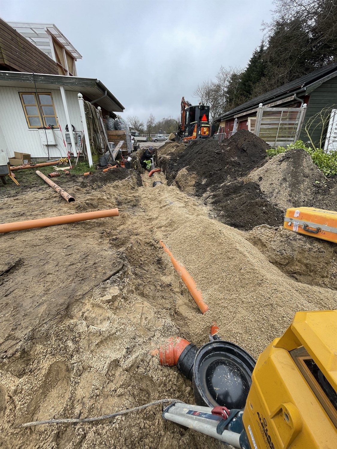 -dræn hele vejen rundt om kroen og et ekstra dræn ud mod åen (270m lang dræn i alt)